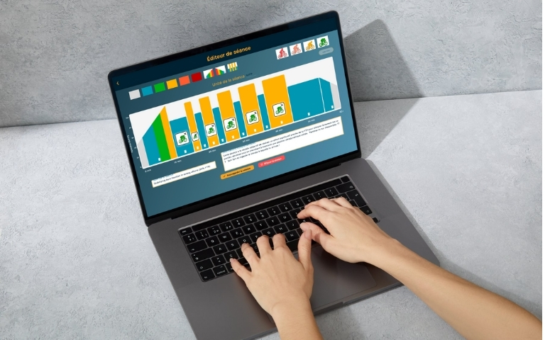 Sur home-trainer, tu progresses dans un monde virtuel.